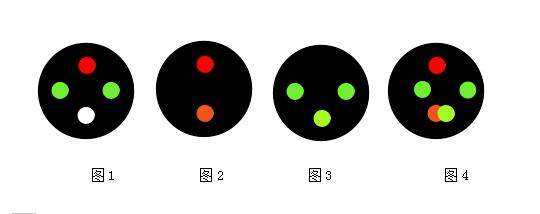 遠、近均4個點,二紅二綠或一紅三綠或一紅二綠一黃(白)。