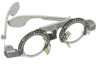 試鏡架是由主架、橫梁、鼻托、鏡腿及調節旋鈕等部件組成。使用時為使用者佩戴試鏡架,調整試鏡架至被使用者最舒適,被使用者的眼睛在主架鏡框的中心。 但是,目前的試鏡架在鏡腿這個部件中,其鏡腿的形狀是不能根據被使用者的需要調節的,這樣的話,被使用者會有不舒適的感覺;還有就是目前的試鏡架主架部分佩戴時會刮、壓到 被使用者的臉部,造成被使用者有不舒適的感覺。
